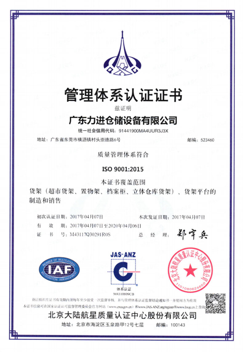 ? 2014年3月 成立香港力進(jìn)倉(cāng)儲(chǔ)設(shè)備有限公司,致力開拓海外市場(chǎng)。