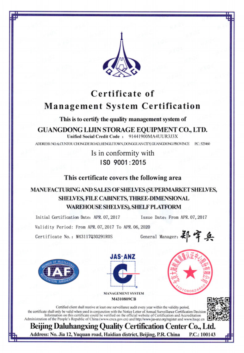 ?2016年5月 更名為廣東力進(jìn)倉(cāng)儲(chǔ)設(shè)備有限規(guī)公司,搬遷至東莞市橫瀝鎮(zhèn)村頭工業(yè)區(qū),占地面積12800平方米。